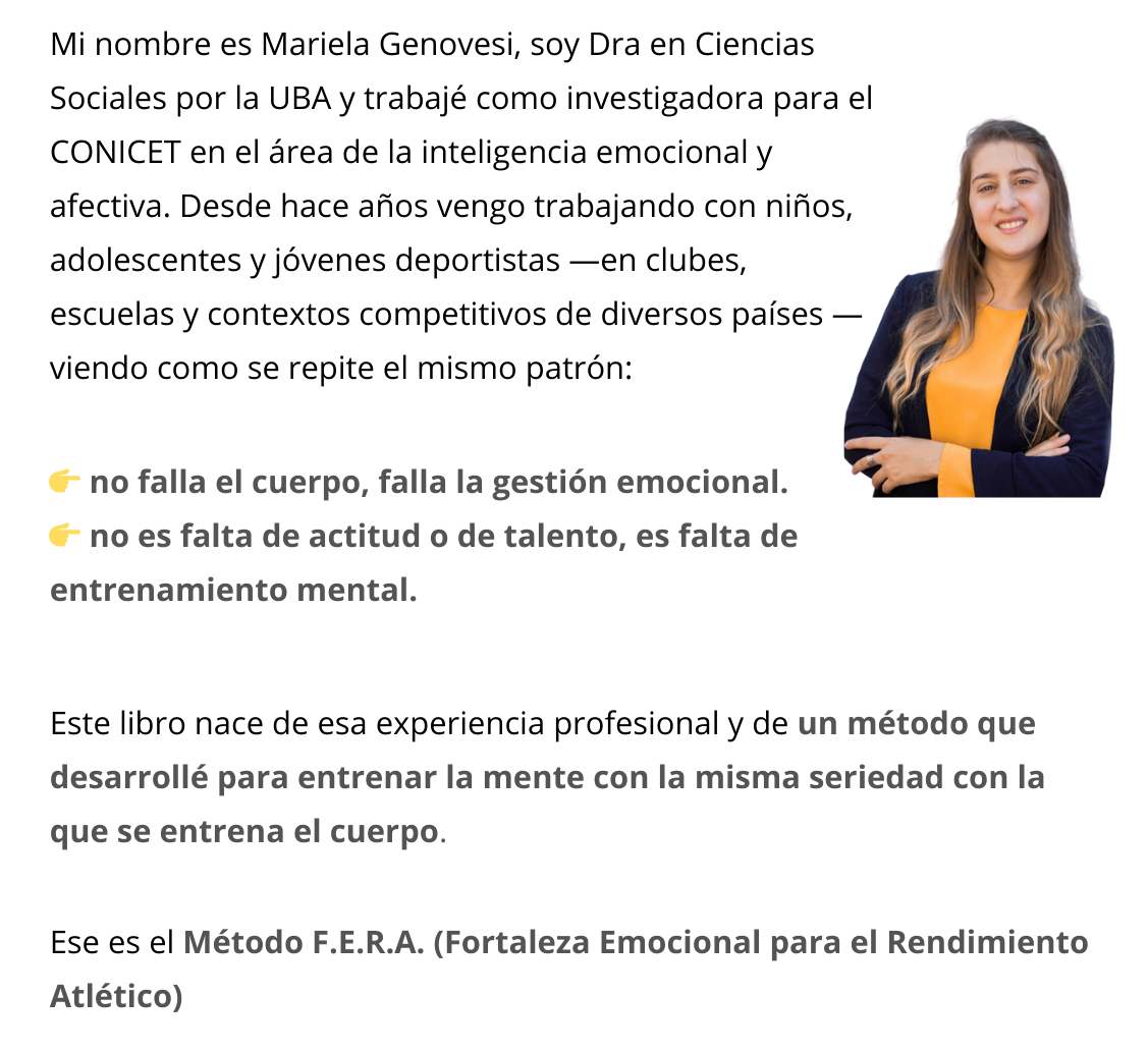 👉 No es solo un libro. Es un manual para saber qué decir y qué no, qué hacer y qué evitar frente a la frustración, el llanto, el enojo, los bloqueos y el miedo al error que experimentan tus hijos/as en partidos o competencias.